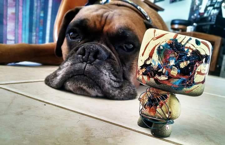 I started aiming for a fundraiser per month, with September being set aside to celebrate Buckner’s birthday. I would release a bunch of cool, new boxer art that month in my shop and all that money was set aside to get the statues and everything for the rescue fundraisers. At some point, people started to send me statues to use for fundraising. Either that they came across in antique shops or some from their personal collection. Sharon, the founder of Legacy Boxer Rescue, donated a huge collection of pieces. I no longer needed to do my boxer art drop in September.