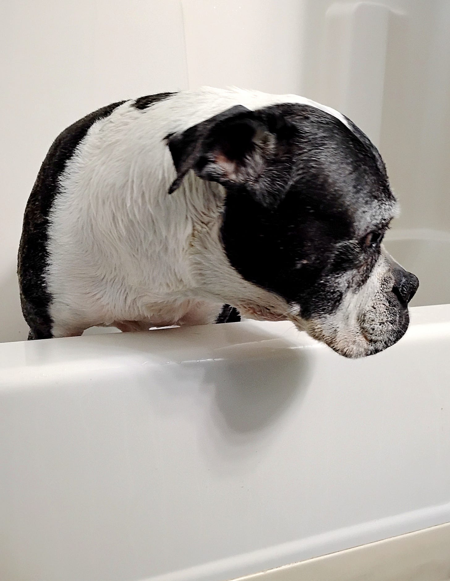 I've got grey around my muzzle, creaky joints, a wonky tail and three toes on one paw. But you know what I see when I catch my reflection in the sliding glass door? A survivor with stories to tell. And I bark at her.