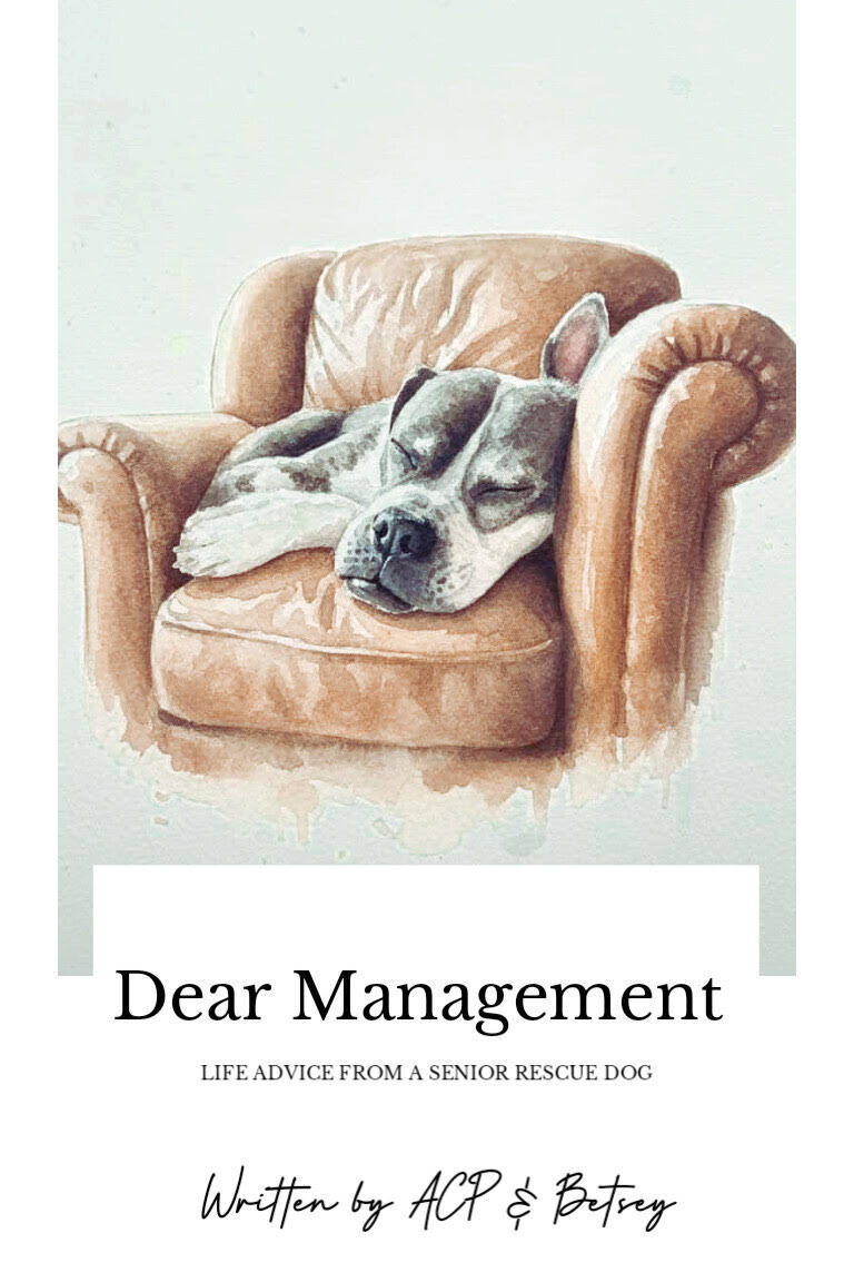 Last but not least in my mini announcements post here, we are getting set to release the Dear Management book. Featuring all the columns written by Betsey with her senior rescue dog advice. I am really hoping to inspire people to adopt senior dogs with this book, and just share the incredible experience I had with Betsey.