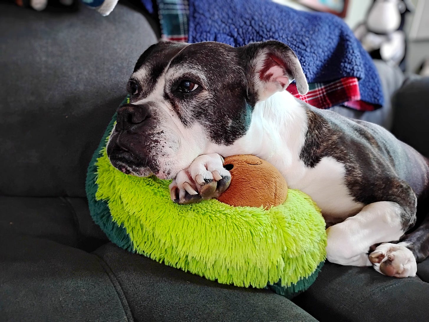 If there are stages of grief, I keep going back and forth between sadness and anger. It just doesn’t seem fair. She was healthy and happy. She had just seen the vet. I have already gone through watching two different boxers with DM and one with cancer. I would have soaked in more of those moments cuddled on the couch together or the walks just her and I would take.