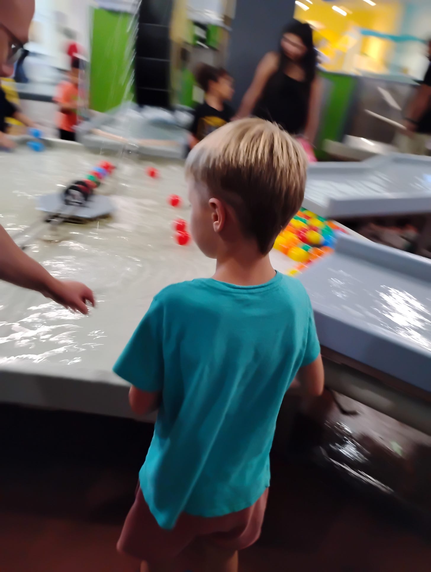 There were kids at the museum flapping their arms in enjoyment. One that was squealing like a velociraptor every time the ball she threw fell into a water exhibit. One girl kept trying to drink the water, and her mom kept rushing over to pull her away. These are just a few behaviors that I don’t bat an eye at (been there myself, especially with the wanting to drink stuff he shouldn’t) that I’ve also seen neuro typical parents cringe at. Or make looks. Or better yet, pull their kid away as if autism is contagious.